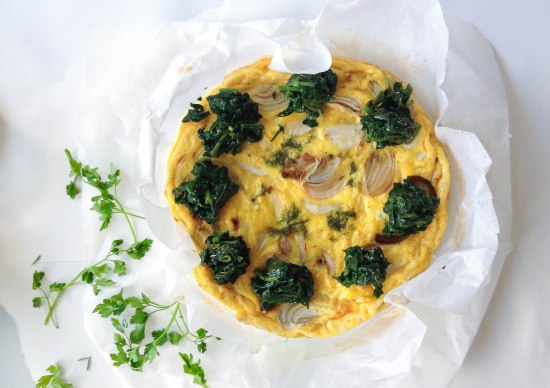 A frittata is like a pancake filled with vegetables or a quiche without the crust. I make frittata when pressed for time on a busy weeknight, using up the vegetables available in my kitchen at the same time. On just one of those kinds of days, I discovered that oven-baked fennel frittata topped with wild spinach salad makes a straightforward and satisfying dinner