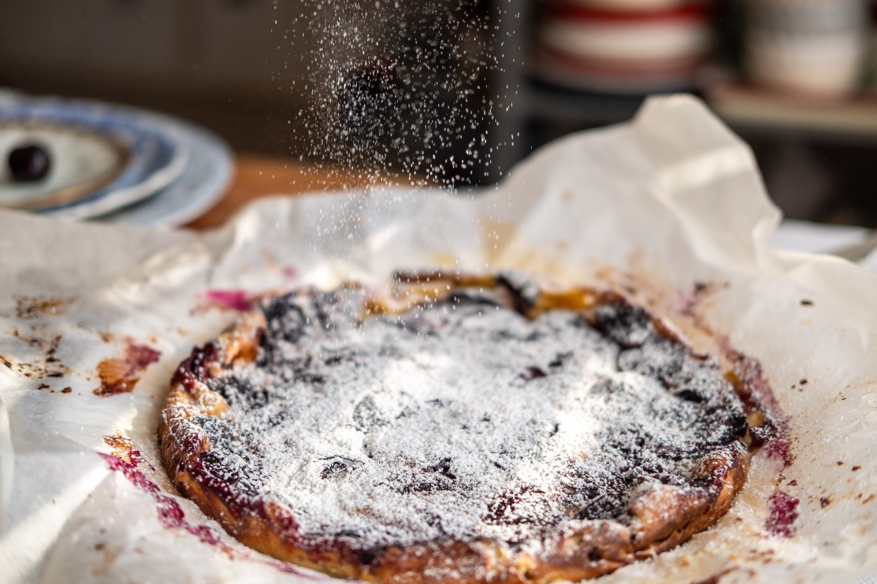 The following recipe is the result of an ever so slightly personalized rendition of Julia Child’s recipe, from her inspiring volumes “Mastering the Art of French Cooking”. Below my tribute and ever-so appreciated summer dessert in the shape of a cherry paradise clafoutis, which by the way is simply the French word for a cake baked with fresh fruit in a milk-based batter.