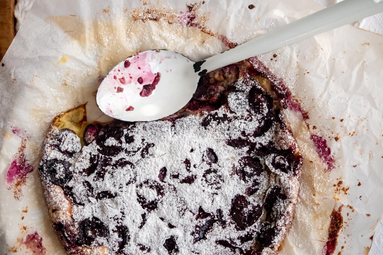 I can imagine how delicious a bowl clafoutis can be with a sprinkling of tart red currants, which of course makes for a great visual effect. Strawberries and raspberries will definitely make for a good pair as well, but all on it’s own it is perfect.