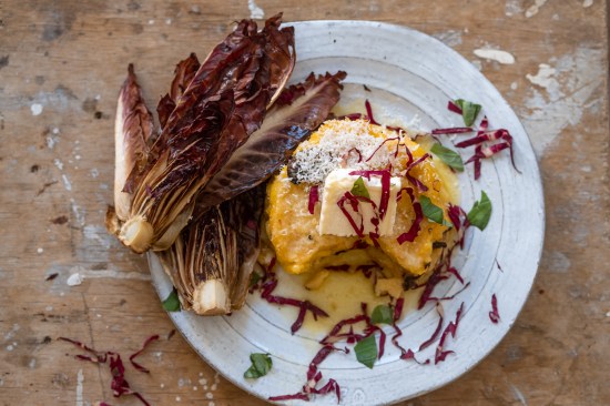 This dish takes some time to make, so find a meditative moment to slow cook. If you need some kitchen encouragement, just imagine aromatic mushrooms layered between creamy layers of polenta, laced with ground white pepper. Add melting Parmigiano cheese and butter to the story and an amber-colored ode to comfort food is born.