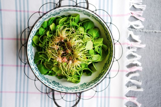Purslane is one of my three favorite spring greens in this simple trilogy.